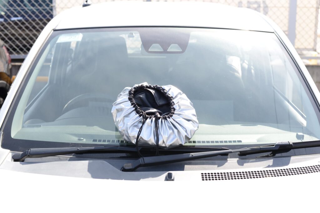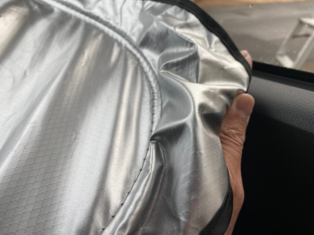 次に車を動かすときにはサンシェードを外すことになりますが、きちんともう一度丸めて専用の袋に収めた方がコンパクトなのでおすすめできます。やるのがどうしても面倒だとか、このあとすぐまた使うから、次に取り付けるときにパパッとやりたいという場合は半分に折りたたんでおいてもいいかもしれません。