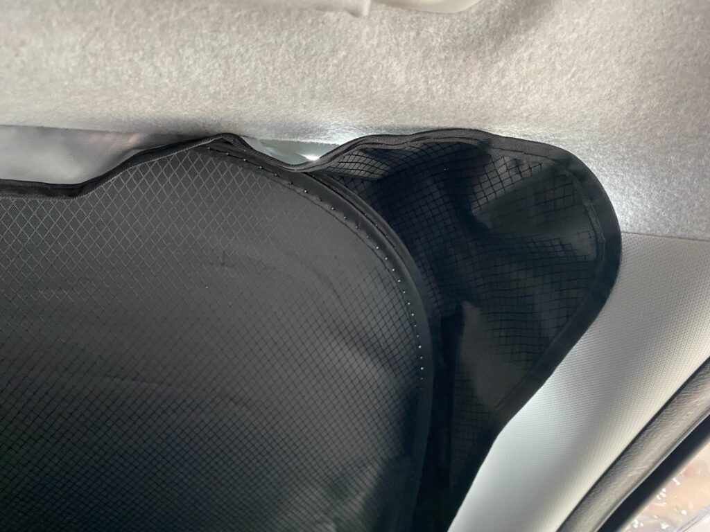 僕は汎用モデルのサンシェードを長いこと使用してきました。今回、RUIYAさんから車種専用モデルのサンシェードを提供いただいて使用してみましたが、窓ガラスの大きさに対してきちんと100%フィットしているので光の差し込みがなく快適でした。